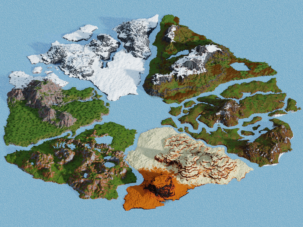 The map has been made in Worldpainter and it has a total of 9 different biomes across the map.