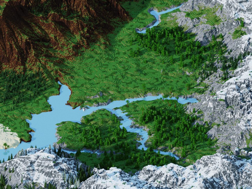 This is a 2k x 2k Minecraft map, existing of mountains, forests and plains areas to build towns or cities,